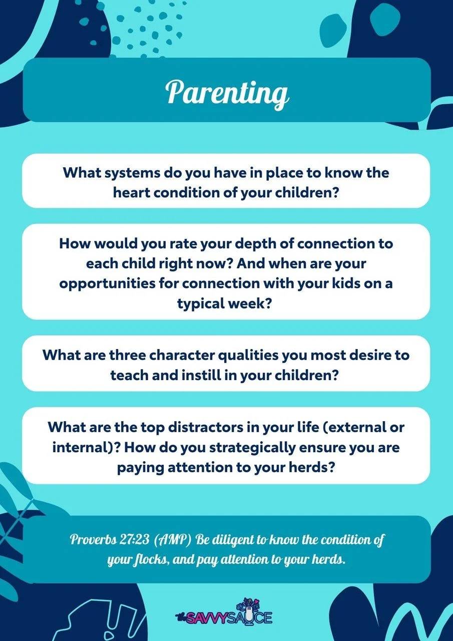 Calling this knowledge to mind gives me zeal and renewed excitement for daily parenting. Another way to infuse energy in parenting comes through reflection and dreaming. I hope these questions allow you to do both.